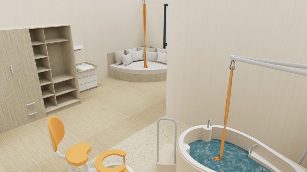 - Une baignoire pour relaxer la patiente et favoriser l’accouchement.